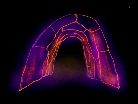 「金の縁路を越えて」スケッチ|XIN QI (Fake Fire Atelier) [シン・チー(フェイク・ファイヤー・アトリエ)](台湾)|佐渡島と台湾・九份の金鉱の記憶を重ね合わせ、洞窟を時空と人の記憶を結ぶ通路として捉え直し、来場者との共同制作を通じて「見えない記憶」と人と人の絆を浮かび上がらせる作品。