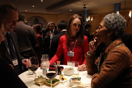 本イベント会場を訪れた世界経済フォーラムのアンドレ・ホフマン共同会長からは、日本の更なる飛躍を願うスピーチをいただいたほか、「ジャパンナイトは様々な日本文化に触れることが出来る、楽しみにしているハイライトの一つです」とのコメントもいただき、会場内をまわって、寿司やお酒を楽しんでいただきました。
