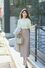 ②トレンドのグレージュとチェック柄でこなれ感のある装いに