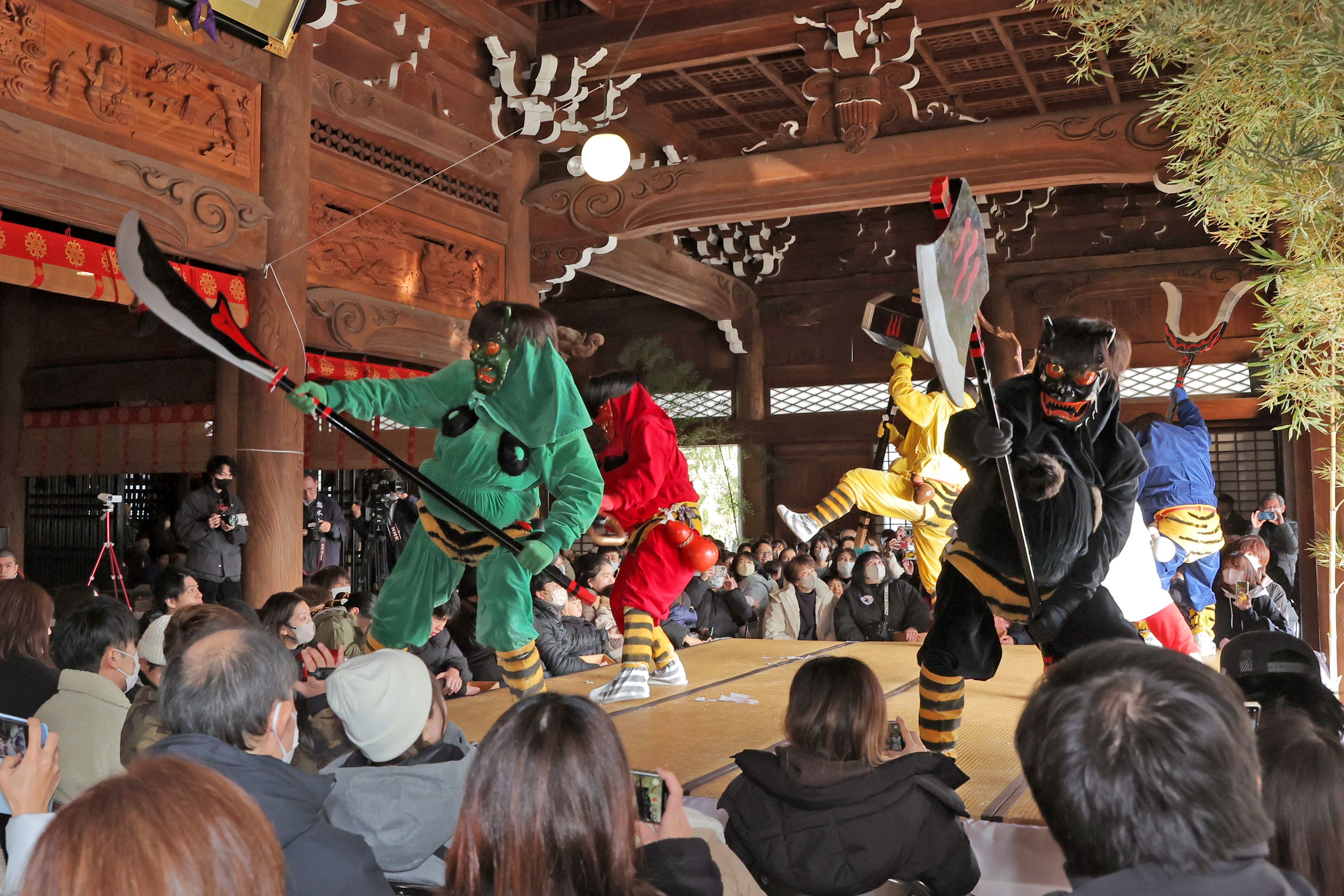 [昨年の様子]【動画あり】本成寺で節分恒例の「鬼踊り」 健康に育つように…鬼に触られ泣く子どもも