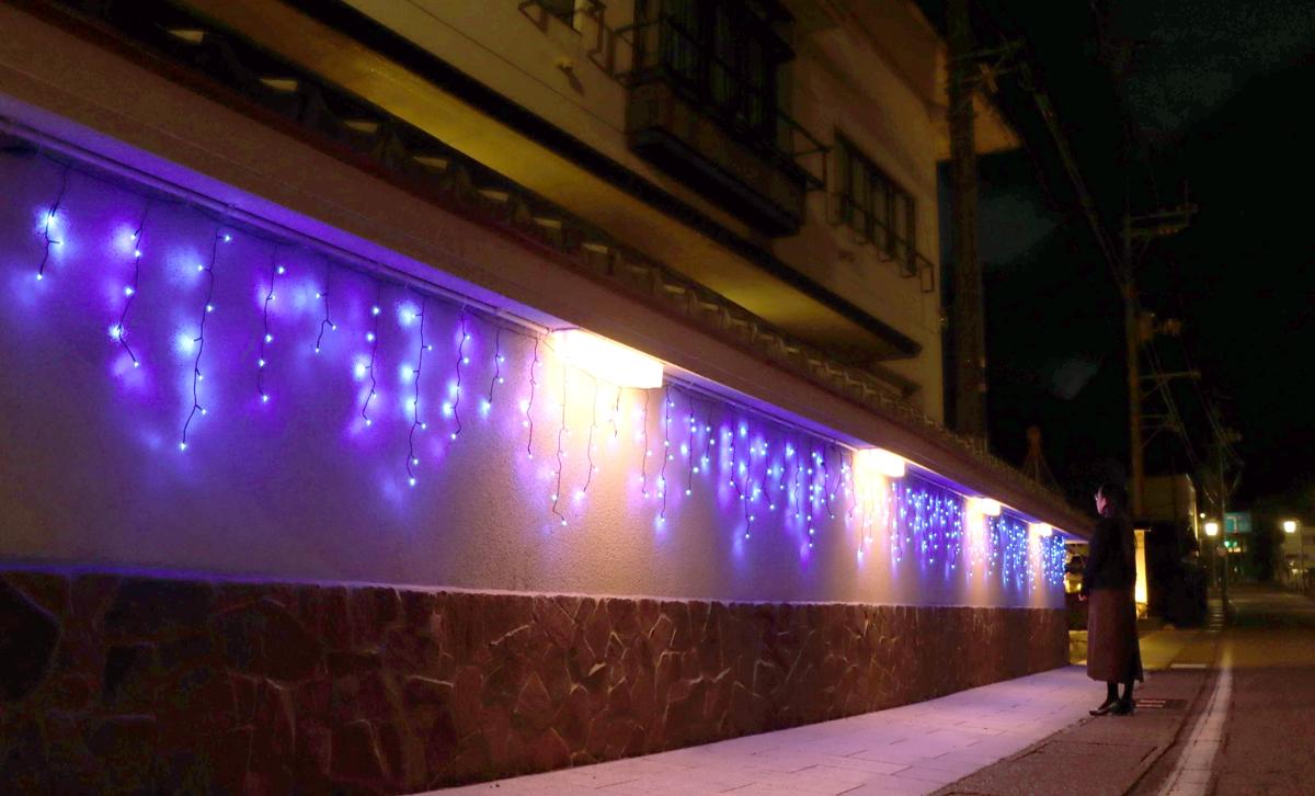 温泉街をイルミネーションで彩る。期間中は、参加店で特典がもらえる観光手形を配布する。