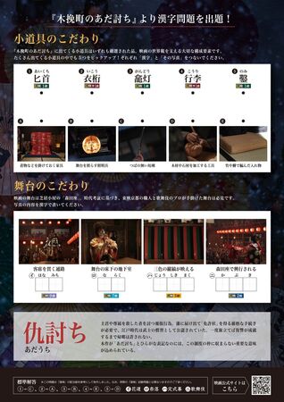 「木挽町のあだ討ち 漢字検定」は漢検ホームページ内にて無料でダウンロードできるほか、漢検 漢字博物館・図書館(所在地:京都市東山区祇園町南側551)にて配布を行います。