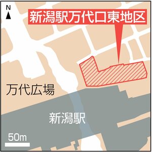 新潟市都市計画審議会は、新潟駅万代口東地区を容積率などの緩和ができる「都市再生特別地区」とする市の方針を承認すると答申した。JR東日本によるオフィスビルと賃貸マンションの建設が予定されており、国の同意を経て2月末にも正式に指定される見通しだ。