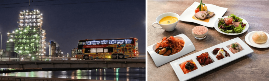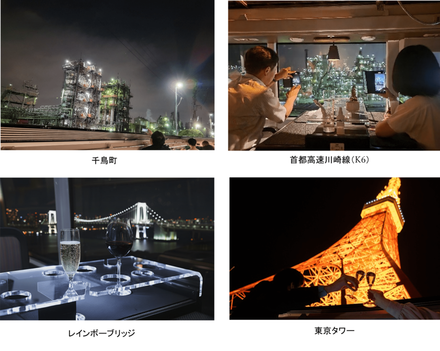 今回は、チネチッタ通り商店街振興組合および川崎産業観光振興協議会(※1)の協力のもと、川崎の観光やおでかけを満喫した後に、川崎や東京の夜景を楽しみながら優雅に東京へ行く『川崎工場夜景プラン(川崎発・東京着)』の運行を、2026年2月21日(土)より実施します。レギュラープランとして好評中の「川崎工場夜景プラン(東京発・川崎着)」の、川崎発・東京着を初めて運行します。また、車内でお酒(※2)とともに楽しんでいただく料理は、健康志向の方にも楽しんでいただけるようヘルシーで本格的な「グルテンフリーイタリアン」を提供します。