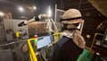 遠隔操作により鋳物製品を研削加工する作業者