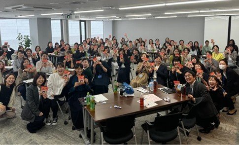 「さゆりキャリアカレッジ」の特別企画として、他社との合同研修も実施しています。各社から数名ずつ女性従業員が登壇し、各人の人生曲線に基づきその時の悩みや喜びなどを発表するプログラムも実施しました。当社西日本支社の従業員が登壇した際の記事を当社のオウンドメディア「COSMOStyle」でも紹介しています。