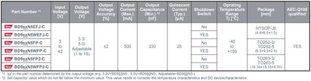 ローム株式会社(本社:京都市)は、車載機器、産業機器、通信インフラなどに用いられる12V/24V系プライマリ(※1)電源用途向けに、独自の超安定制御技術「Nano Cap™(ナノキャップ)」 を搭載した出力電流500mAのLDOレギュレータ(※2)IC「BD9xxN5シリーズ」全18製品を開発しました。