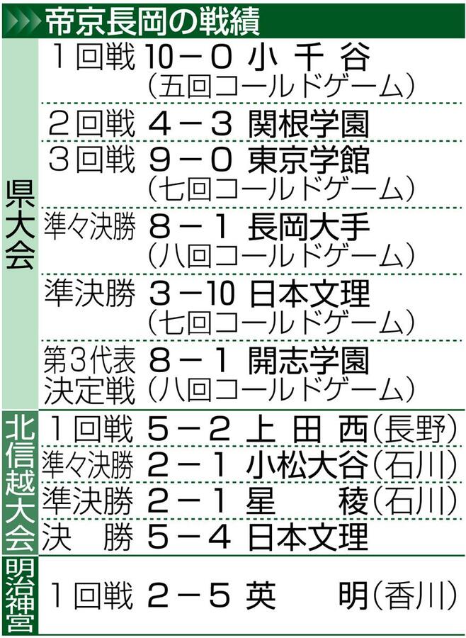 「帝京長岡の歴史を変えたいと思ってやってきたので今すごくうれしい」。...