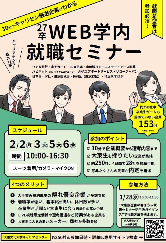 【対 象】 2027年3月卒業予定の大東文化大学生