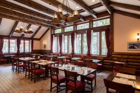 山小屋風の造りのカジュアルなレストランです。宿泊のお客様のみならず、上高地を訪れる多くの方にもご好評のランチメニュー「信州産地卵のオムライスとハッシュドビーフ」は、濃厚な信州産地卵を使用した半熟卵と帝国ホテル伝統のデミグラスソースをベースにした一品です。