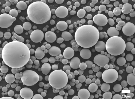 通常の合金は原子が規則正しく並んだ結晶構造になっているのに対して、物質を構成する原子の配列に規則性のないものをアモルファス(非晶質)合金といいます。固体でありながら液体同様の原子が不規則に密に詰まった構造を持ち、エネルギー伝導性・強 度・軽量性に優れたアモルファス合金を、数十から数百ミクロン単位の微小な粉末にしたものをアモルファス合金粉末といいます。