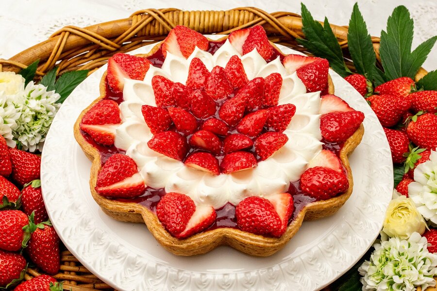 一つ目の「輪花型 “紅ほっぺ”とホワイトチョコのチーズスフレタルト」は、“紅ほっぺ”と、やさしい甘さのホワイトチョコチーズスフレを組み合わせました。イチゴのみずみずしさと、軽やかなスフレの調和を、口いっぱいに感じていただけます。二つ目の「特選 静岡県産 “紅ほっぺ”とチョコレートクリームのタルト」は、自家製カスタードクリームにチョコレートとホイップクリームを合わせた、濃厚ながらも軽さのあるチョコレートタルトです。厳選した大粒の紅ほっぺを約25粒使用し、旬のイチゴとチョコレートの魅力を存分に引き出した一品に仕上げました。