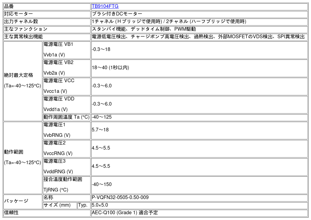 東芝:大電流駆動対応の車載ブラシ付きDCモーター用ブリッジ回路向けゲートドライバー「TB9104FTG」