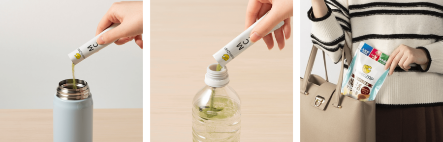 忙しい方でも無理なく簡単に継続できるよう、水やぬるま湯にさらっと溶ける粉末タイプを採用しました。かさばらず持ち運びに便利なスティック個包装のため、自宅はもちろん、職場やジムなどの外出先等、いつでもどこでも、飲みたい時にすぐ飲むことができます。また面倒な煮出しはなく、後片付けの手間も省けます。日々の健康習慣を簡単、便利にするだけでなく、自分を整える時間を前向きに楽しむためのパートナーとして、健やかなライフスタイルをサポートします。