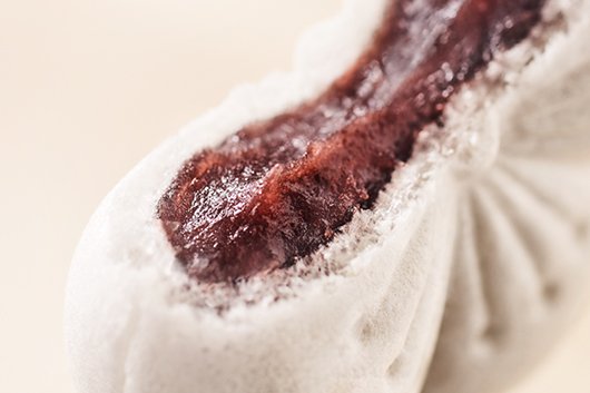 ・『御代の春・紅』 皮のほのかなお米の香りが、白餡の豊かな味わいを引き立てます。