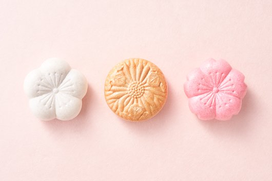 ・意匠や菓銘とともに:「桜」・「菊」・「梅」をかたどった可愛らしい形に、縁起のよい銘。
