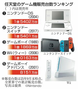 任天堂の歴代ゲーム機の世界累計販売台数(2025年9月末時点)はDSが1億5402万台で、スイッチが1万台差の1億5401万台。続く「ゲームボーイ」、「Wii(ウィー)」も1億台以上の実績を持つ。任天堂はこれまで四半期ごとの決算...