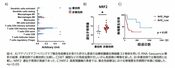 次に、アテゾリズマブ/ベバシズマブ療法の国際第 III 相臨床試験(IMbrave150)において取得された治療開始前肝がん生検組織247検体を用いて、外部検証を行った結果、非奏効例では奏効例と比較し、腫瘍内の免疫細胞浸潤が少ない免疫枯渇型のがん微小環境を呈しました(図 5A)。また、NRF2とCOX2の遺伝子発現ならびに、NRF2経路とプロスタグランジン合成経路の間に正の相関関係が認められました(図5B-C)。以上から、NRF2-COX2経路を介した免疫枯渇型がん微小環境形成が、複合免疫療法の抵抗性に関与していることが示されました。
