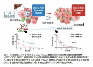 NRF2-COX-PGE₂経路活性化により免疫細胞が腫瘍内に少ない「免疫枯渇型」腫瘍が形成され、複合免疫療法に抵抗性を示す。血漿PGE₂濃度により複合免疫療法の効果が予測されCOX-2阻害剤が複合免疫療法に対する抵抗性解除につながる可能性がある。