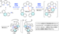 複数の芳香環(ベンゼン環など)が、らせん状に連結した構造をもつ有機分子の総称。分子自体がねじれた形をしているため、鏡像関係にある2種類(右巻き・左巻き)が存在し、不斉(キラリティ)を示す。キラル光学特性、特に円偏光発光材料として注目されている。