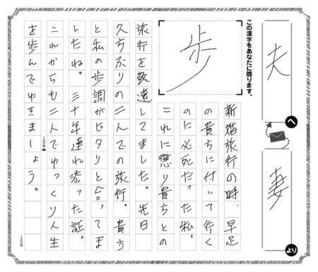 □応募テーマ :「贈りたい漢字(一文字)とメッセージ」(※120字以内)