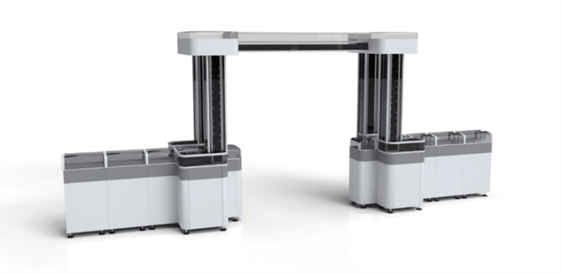 搬送ラインの両側に分析装置や処理モジュールを配置できるレイアウト構造を採用することで、省スペースな運用が可能になり、検査室の限られたスペースを最大限に活用できます。加えて、新たに導入した橋梁モジュールや垂直輸送モジュールにより、上下方向の空間を活用した3Dレイアウトも可能となり、検査室の規模やニーズに応じて柔軟な設計を行うことができます。