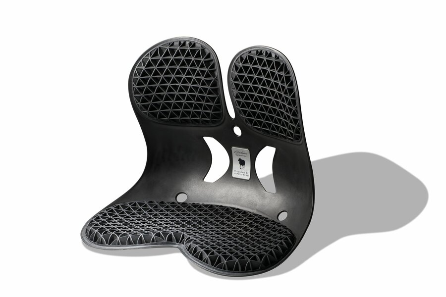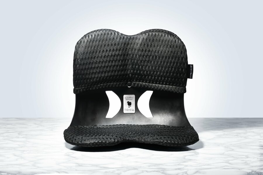 『ヒツジのいらない枕®』シリーズで培われた、体圧分散・フィット感・反発力のバランス設計を最適化させており、高品質素材のTPE(熱可塑性エラストマー)と体圧分散を発揮する三角格子構造を融合させ着座時間をサポート。100kgの耐荷重テストをクリアする耐久性を保ちながら、背中・おしりの面にそれぞれ空気の通り道を多数設置することで、背骨や腰への負担を軽減しながらムレによる集中力の低下や座り直しによる姿勢の崩れを低減させます。