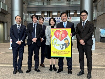 なお、寄託式は2026年1月29日(木) に石川県庁にて実施。株式会社まつや 佐田啓子社長と、当社中部支店・支店長 丹治憲市、同次長 川村浩一が、石川県出納室 松本隆子出納室長と面会し、義援金目録を寄託いたしました。