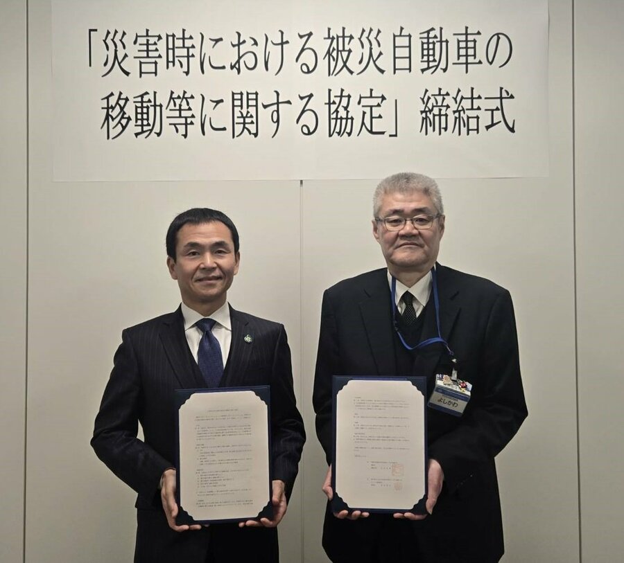 本協定では、災害発生時には、当組合が被災車両の移動を支援し、迅速な救命・救出活動や緊急物資輸送の円滑化に貢献します。