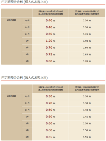 2026年2月2日(月)に、円定期預金金利を下記のとおり改定いたします。
