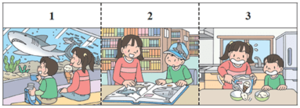 英文の内容をいちばんよくあらわしているイラストを、1~3の中から1つえらびなさい。