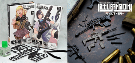 リアルな銃火器を精密に再現するプラモデル『リトルアーモリー』。2014年の発売以来、200種を超える製品を展開し、多彩なイラストレーター陣が描く「リアルミリタリー×女子高生」のパッケージアートが魅力のシリーズです。そのビジュアルは模型の枠を越えてキャラクターとして息づき、ノベル・コミック・グッズなど、幅広いメディアへと広がり、ついに舞台化されることが発表されると、瞬く間に話題となりました!