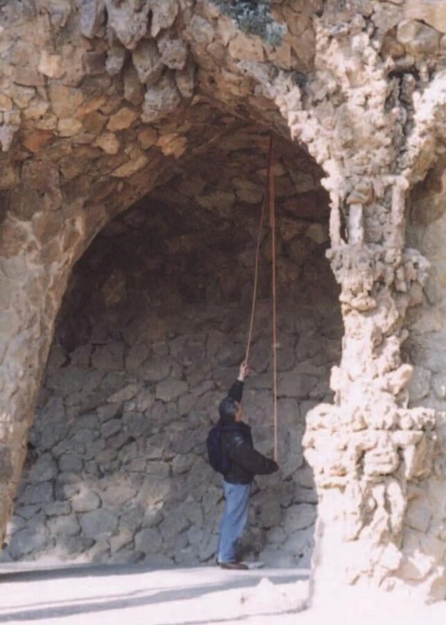 田中氏はカタルーニャ工科大学バルセロナ建築学部のガウディ研究室で学びながら、実測に没頭。サグラダ・ファミリアの実測時には、原寸模型制作現場に出入りしながら作業することもあった。