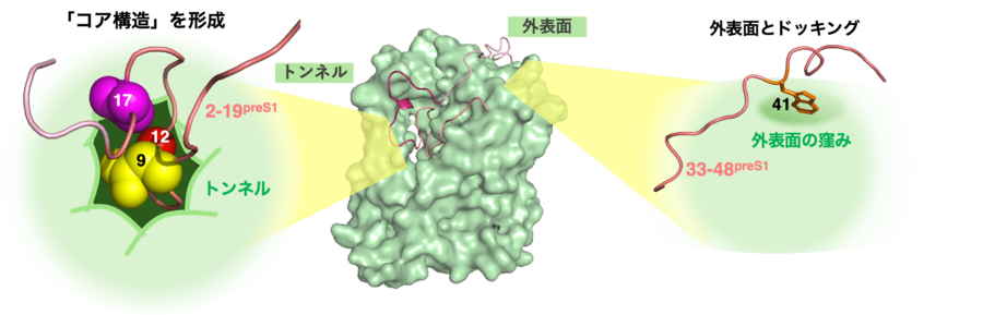 HBV preS1は2–19アミノ酸領域が「コア構造」を形成することでNTCPのトンネルに深くはまり、