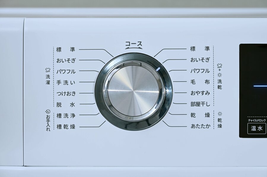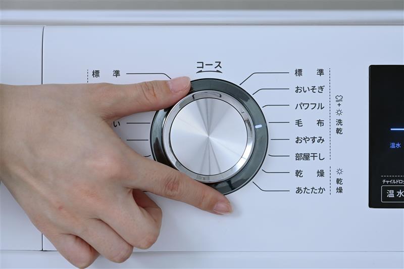 当商品最大の特長は、上部中央の「ダイヤル式操作」です。一般的なドラム式洗濯機はタッチボタン操作が主流ですが、目的のコースになるまで何度もボタンを押して設定するタイプが多く手間やストレスになりがちでした。当商品では見やすさ・使いやすさにこだわり、製造コストをかけて視認性を高めた液晶パネルとダイヤル式を組み合わせることで直感的な操作が可能となりました。初めてドラム式を使う方でも説明書に頼らずモードを選択できる使いやすい設計となっています。