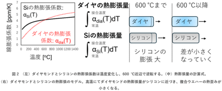 ダイヤモンドウエハーとシリコンウエハーは高温で接合するほど熱反りが減少することを実証