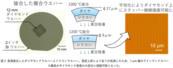ダイヤモンドの大面積ウエハーを実現するその他の手法として、小さなダイヤモンドウエハーを大面積シリコンウエハーに多数貼り付けることも考えられます(図1)。真空中でのスパッタ表面処理による常温接合が提案されており、この方法は剥離しにくい界面が実現できます。しかし、常温接合した複合ウエハーの高温プロセス後の熱反りについては検討されておらず、また接合には凹凸が数原子レベルの平滑な表面であることが必要です。