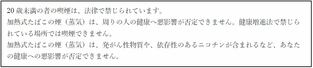 BATグループでは、たばこ製品のマーケティングを適切に実施するために国際的な自主規準を設定しています。そのため消費者に対するたばこ製品に関するすべてのコミュニケーションには、20歳未満の方へのコミュニケーションをお控えいただくとともに、「喫煙と健康に関する注意文言」を表示することを関係各位にお願いしております。加熱式たばこに関しては、記事掲載していただく際には、「健康に関する注意文言」が表示されるようご配慮いただきたく存じます。ご協力の程、何卒よろしくお願い申し上げます。