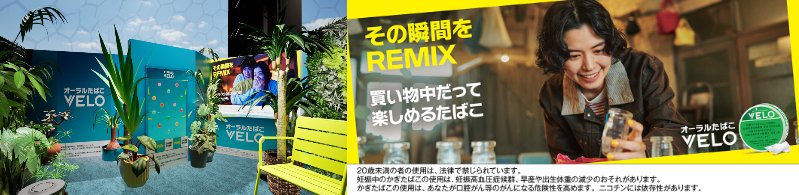 また、同ブース内に設けている、VELOエリアでは、最新のキャンペーンテーマである「その瞬間をREMIX」をコンセプトに、冬の雪景色の中に南国のオアシスをイメージした「VELOトロピカルフォレスト」デザインの専用エリアを展開。2月2日に販売開始した新製品、「ベロ・スムース・ペパーミント・ミディアム」を含む、VELO製品のトライアル体験に加え、VELO缶を使ったゲーム形式の体験企画を通じて、楽しみながらブランドや製品への理解を深められる体験を提供します。