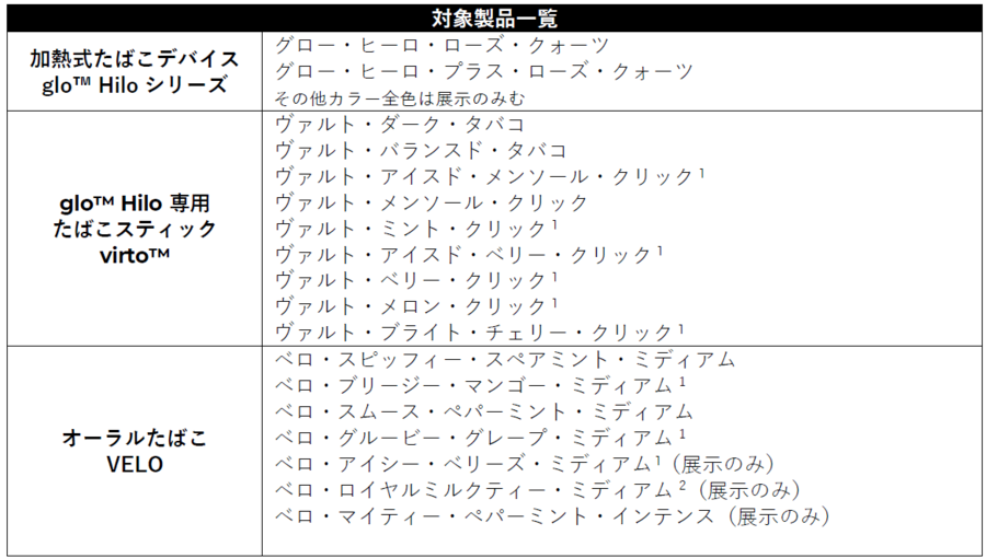 ■glo™ Hiloシリーズ・VELOの展示 /トライアル体験対象製品