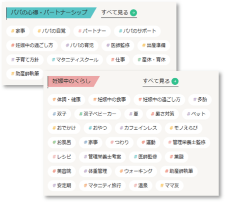 妊娠月数とプレママ向け・プレパパ向けといった条件で絞り込むことで、「今必要な情報」を効率よく読むことができます。