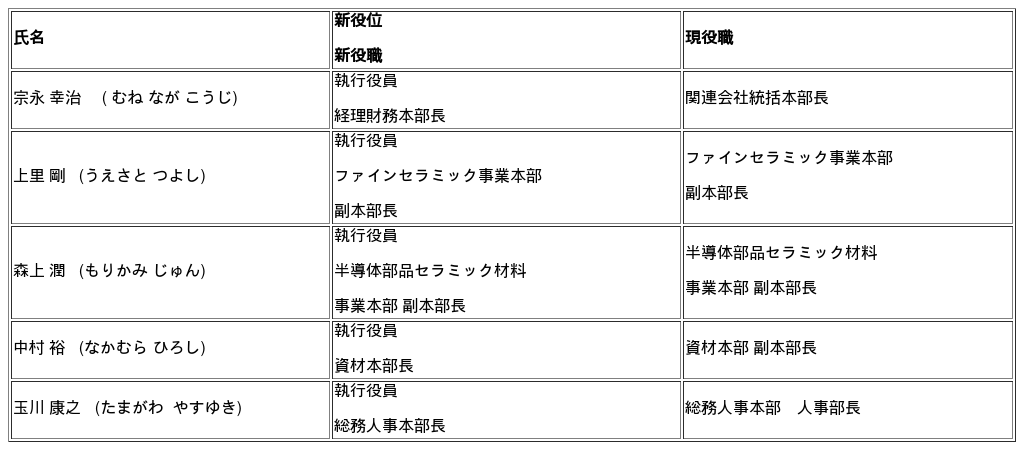 3.京セラ株式会社の本部長人事(本年4月1日付)