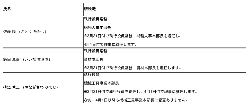 (3) 執行役員の役位ならびに役職の変更(本年4月1日付)