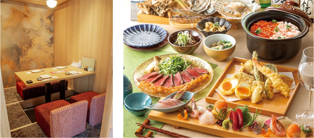 和食に洋のエッセンスを融合させた創作料理や天ぷら、土鍋ごはんなどを日本酒中心の多彩なドリンクメニューとともに提供します。