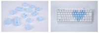 晴れ渡った空のような、濁りのない淡い青が、デスクに軽やかな抜け感をもたらします。全キーの付け替えはもちろん、これまでに販売した「桜・山葵・蒲公英・藤」、また定番色の白・墨・雪との組み合わせもお楽しみいただけます。