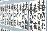 近所の子どもたちの作品を見に来た見附市本明町の無職女性(68)は「正月らしさを感じる。子どもたちの元気な字が見られて楽しい」と話した。2月8日まで。