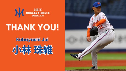 オイシックス新潟アルビレックス・ベースボール・クラブは、小林珠維選手の退団をお知らせいたします。