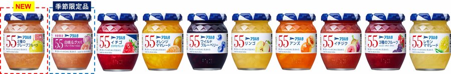 「アヲハタ 55」シリーズは、1970年の発売以来パンの最高の相棒をめざして進化を続けています。今回は、さわやかな柑橘系のフレーバーが人気であることから、新たなラインアップとして「2種のグレープフルーツ」が誕生しました。また人気のフルーツを組み合わせた「白桃&グァバ(グレープフルーツ入り)」を季節限定品として発売します。