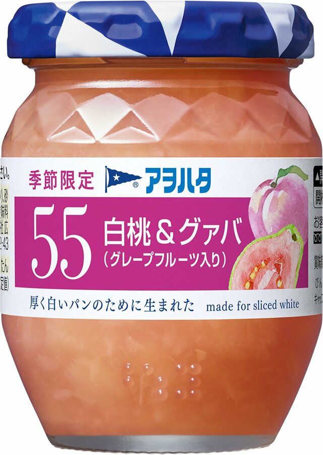 アヲハタ株式会社(本社:広島県竹原市、代表取締役社長:上田敏哉、以下アヲハタ)は、フルーツ本来の色と香りにこだわったコクのある低糖度ジャム「アヲハタ 55」シリーズから、「2種のグレープフルーツ」を新たに発売します。さらに春夏の季節限定で「白桃&グァバ(グレープフルーツ入り)」を発売します。
