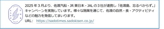 「佐渡時間」商品紹介ページ https://www.sadokisen.co.jp/trip-top/plans/sadotime2026/